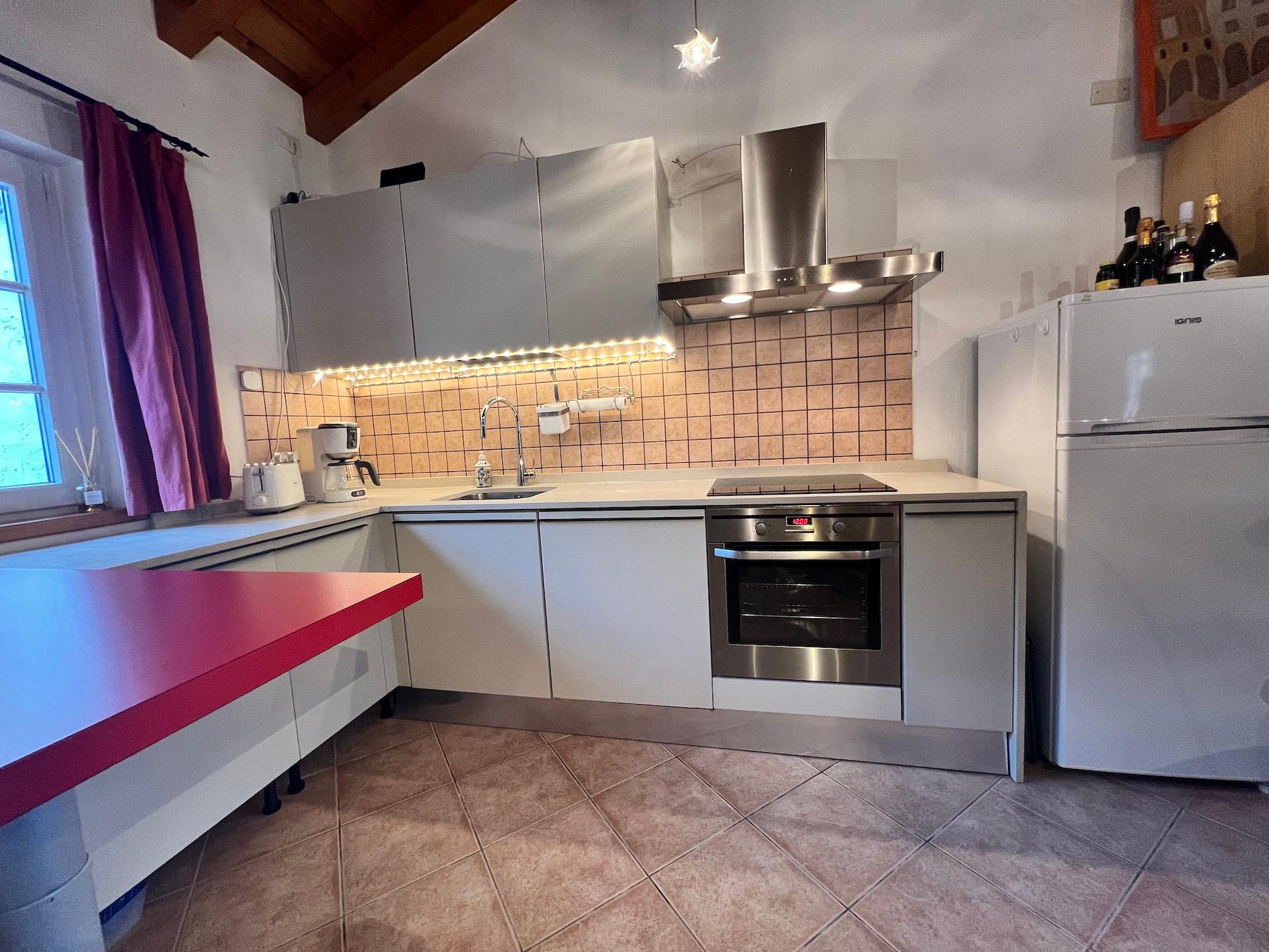 - Zona giorno con cucina e area pranzo: La zona giorno dispone di una cucina completamente attrezzata, un tavolo da pranzo e un divano letto estraibile, ideale per ospitare eventuali ospiti aggiuntivi.