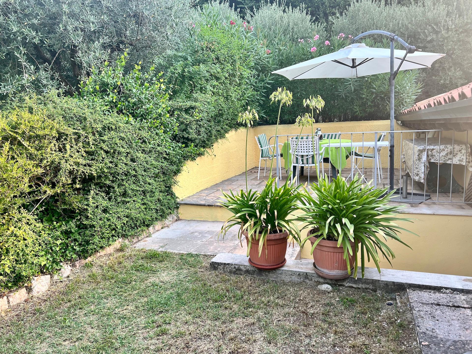 - Area esterna privata: La tua terrazza privata è arredata con tavolo, sedie e ombrellone, perfetta per rilassarti. Il giardino, dotato di lettini, offre momenti di puro relax all’aria aperta.